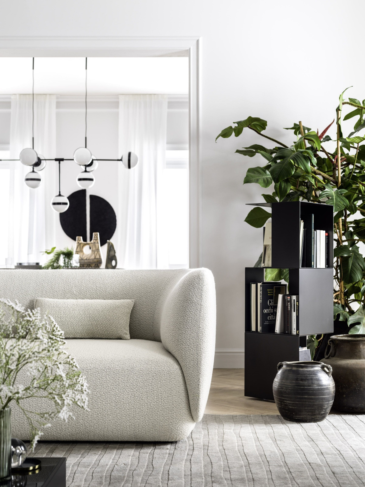 Οι καναπέδες με καμπύλες και οργανικές φόρμες είναι το απόλυτο must της εποχής. Προσφέρουν απαλότητα, ροή και γλυπτική παρουσία στο σαλόνι. Οι “curvy” γραμμές στους καναπέδες αλλά και σε αντικείμενα design, όπως τα φωτιστικά, λειτουργούν σαν φυσικό κάλεσμα για χαλάρωση και επικοινωνία.
