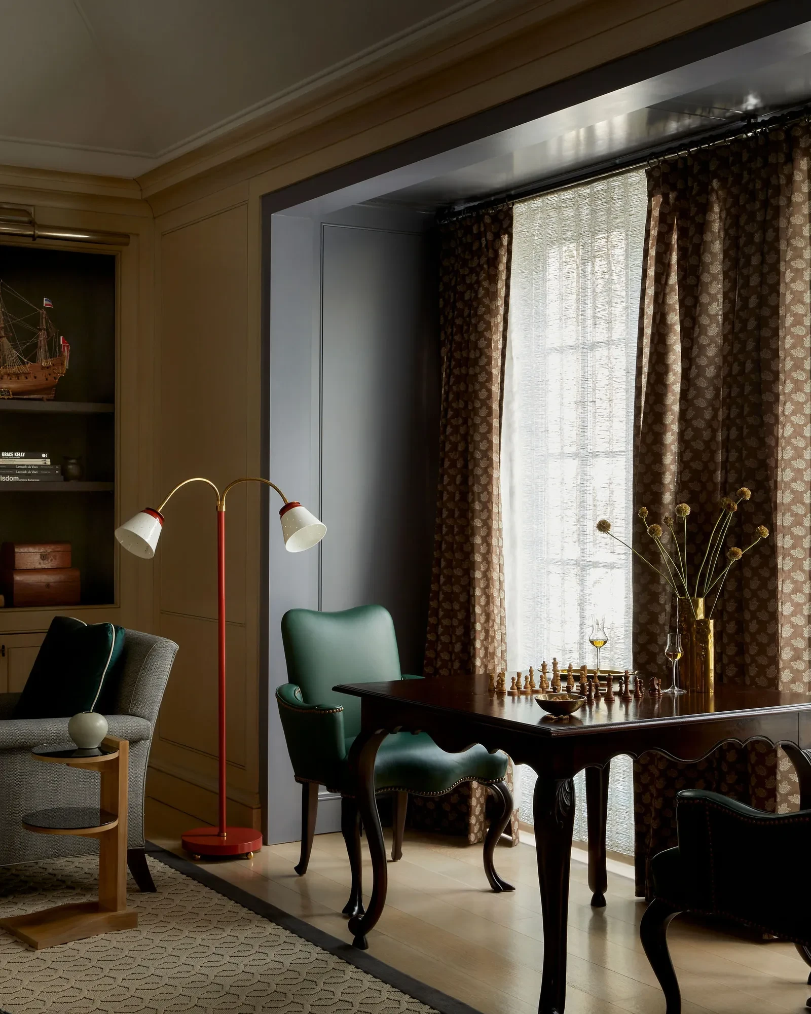 Το βασικό χρώμα που κυριαρχεί στον χώρο και θέτει τους υπόλοιπους τόνους είναι γήινο. «Επιλέξαμε πλούσια, ζεστά χρώματα κληρονομιάς για να εκφράσουμε τη διαχρονικότητα», σύμφωνα με την Albanese.