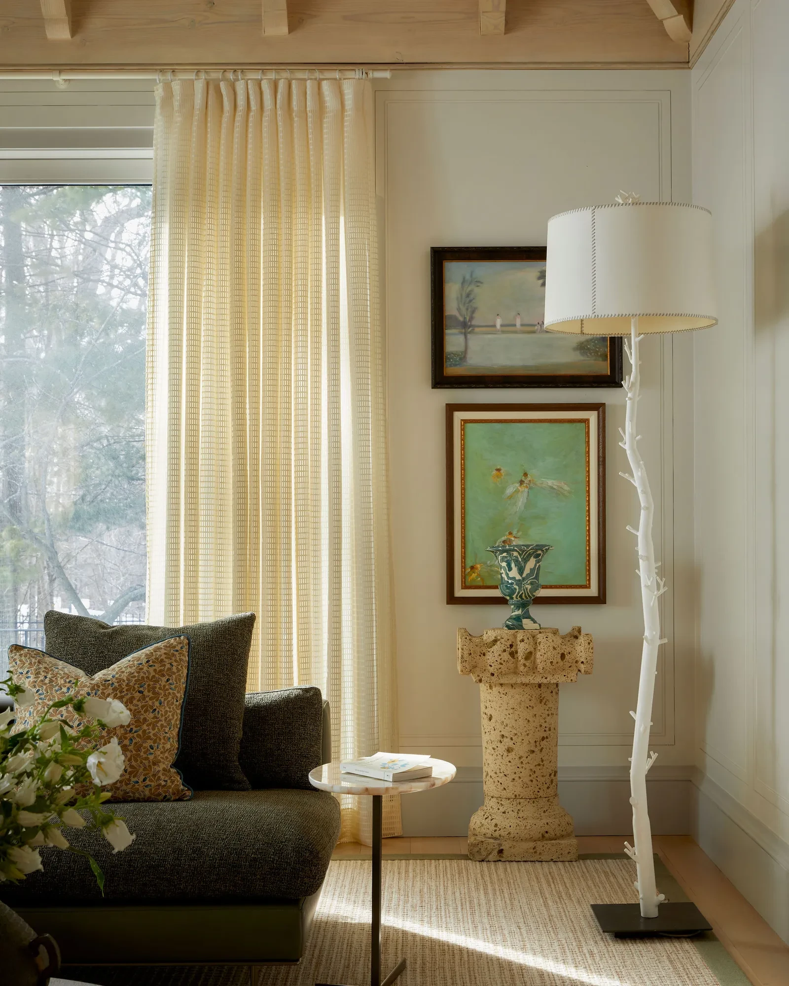 «Το αποτέλεσμα είναι ένας διάλογος μεταξύ παρελθόντος και παρόντος: ένα σπίτι που αναγνωρίζει την πολιτιστική καταγωγή του Κεμπέκ, ενώ παράλληλα αγκαλιάζει μια σύγχρονη φωνή που δίνει την αίσθηση ότι είναι εντελώς δική του» συμπληρώνει η designer σχολιάζοντας το δωμάτιο της βιβλιοθήκης που θυμίζει ένα είδος οικιακού θεάτρου.