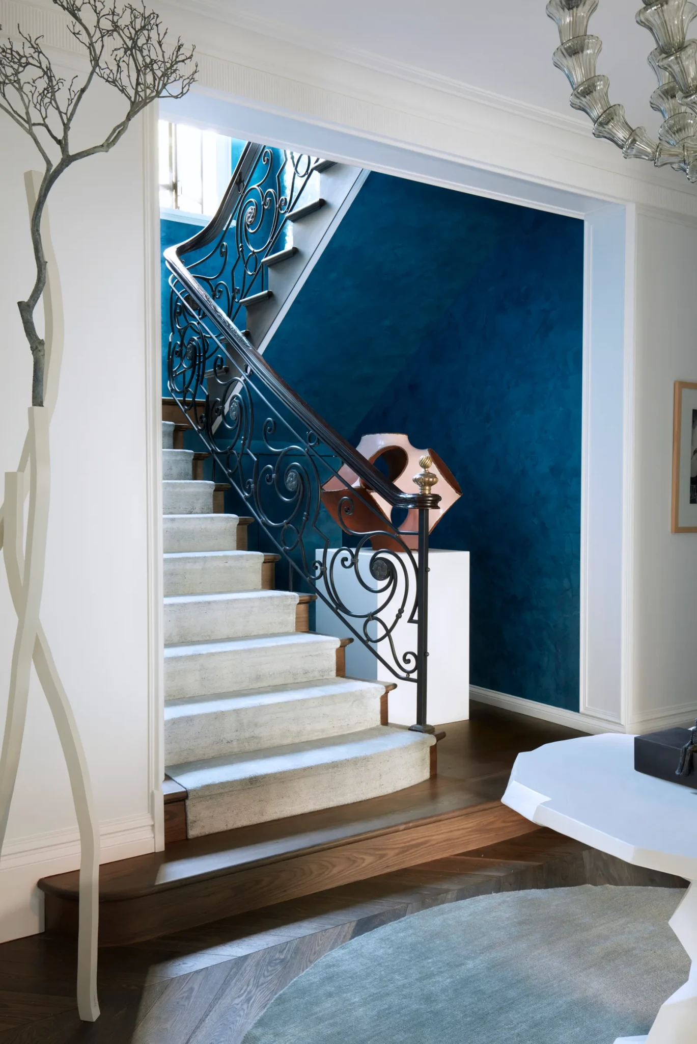 Ο κορμός αυτής της ποικιλίας είναι η σοφιστικέ μπλε σκάλα με τον χαρακτηριστικό χρωματικό τόνο λειτουργεί ως η σπονδυλική στήλη του σπιτιού και σημάδι της ίδιας της σύνδεσης με το νερό. Η σκηνή της σκάλας παίζει με την αντίθεση: από τη μια πλευρά είναι ήρεμοι, απαλοί χώροι, κι από την άλλη, μια έκρηξη χρώματος που ξυπνά τις αισθήσεις.