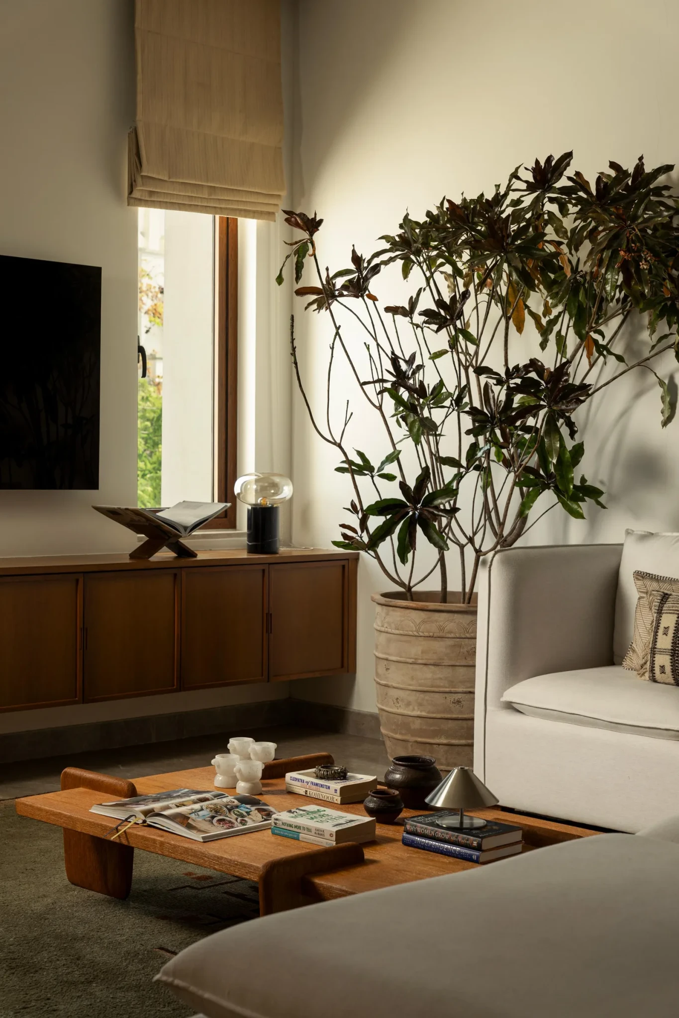 Σε ένα τέτοιο διαμέρισμα 3.500 τ.π., η αρχιτέκτονας και interior designer Gowri Adappa προχώρησε σε μια πλήρη αναθεώρηση του αρχικού σχεδίου. Το σπίτι, που φιλοξενεί ένα ζευγάρι και τα δύο τους σκυλιά, στερούνταν χαρακτήρα και coziness - αρετές στις οποίες κάθε κατοικία έχει δικαίωμα. Έτσι, απογυμνώθηκε μέχρι τον δομικό του πυρήνα και αναδομήθηκε με νέα λογική: διαφάνεια, φωτεινότητα, υλικό βάθος. Η διάταξη απέκτησε ρευστότητα, οι ζώνες επικοινωνούν μεταξύ τους μέσω αθέατων ορίων, και ο μοντερνιστικός παλμός συνυπάρχει με διακριτικές ινδικές αναφορές και mid-century εντάσεις.
