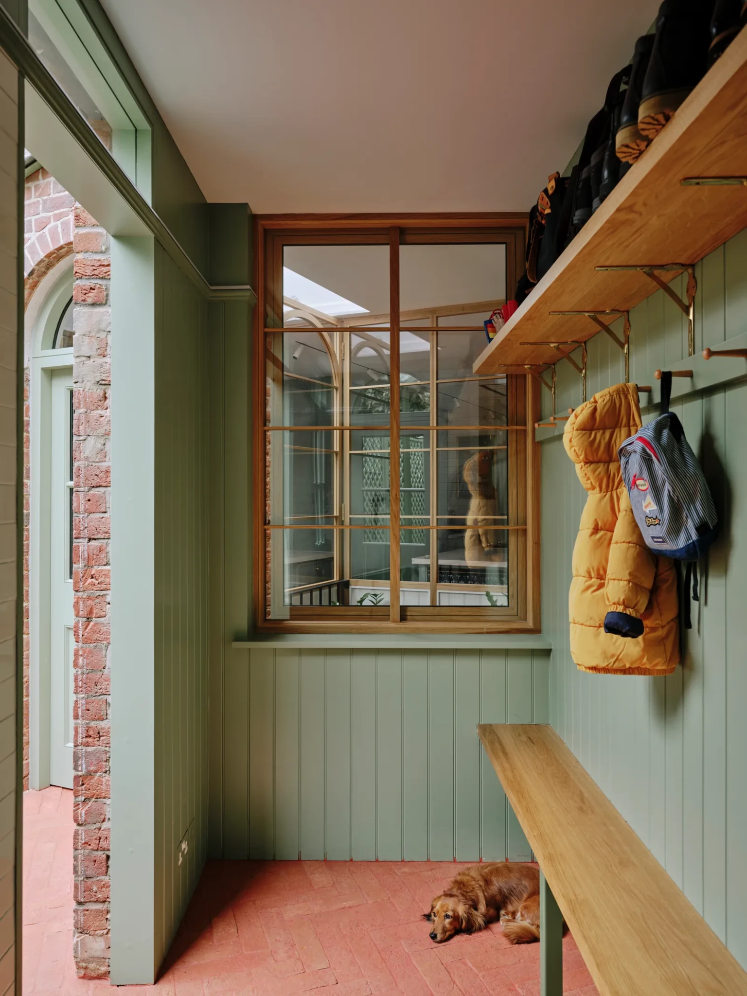 Η βασική ιδέα ήταν να διατηρηθεί ο παραδοσιακός χαρακτήρας του κτιρίου, αλλά και να δημιουργηθεί ένα σπίτι που να λειτουργεί με άνεση στην καθημερινή ζωή του σήμερα. Για παράδειγμα, η γυάλινη επέκταση στον πλευρικό διάδρομο μετατράπηκε σε έναν ενιαίο πεζόδρομο που οδηγεί από τη πύλη στην είσοδο του σπιτιού και το "χωλ", τον χώρο όπου η οικογένεια μπορεί να αφήνει τα παπούτσια και τα ρούχα της πριν μπει στο κύριο μέρος του σπιτιού.