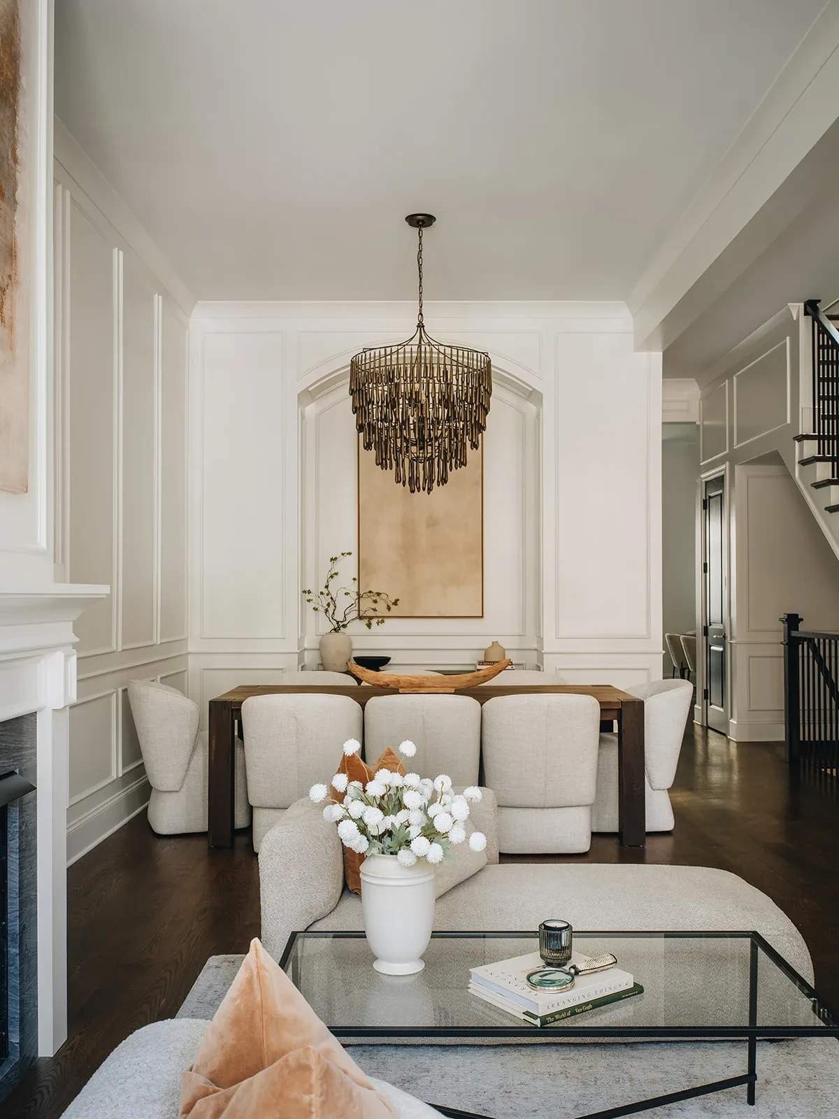 Όταν το townhouse βγήκε στην αγορά, ήταν εντελώς γυμνό - ένας καμβάς έτοιμος για δημιουργία. «Βρισκόταν σε έναν από τους αγαπημένους μου δρόμους», θυμάται η Thompson. «Με οροφές 3,6 μέτρων και ένα παλιό carriage house πίσω - κάτι που πια δεν χτίζεται στο Σικάγο. Ήταν μοναδικό και αναπόσπαστο κομμάτι του σπιτιού.» Η κατοικία ήταν ιστορική, κι έτσι κάθε αλλαγή απαιτούσε έγκριση από την πόλη - από την ανασκαφή του υπογείου έως την αντικατάσταση των παραθύρων. «Η ανακαίνιση κράτησε 11 μήνες, κάτι ασυνήθιστο για μένα, καθώς οι περισσότερες διαρκούν έξι με επτά», εξηγεί.