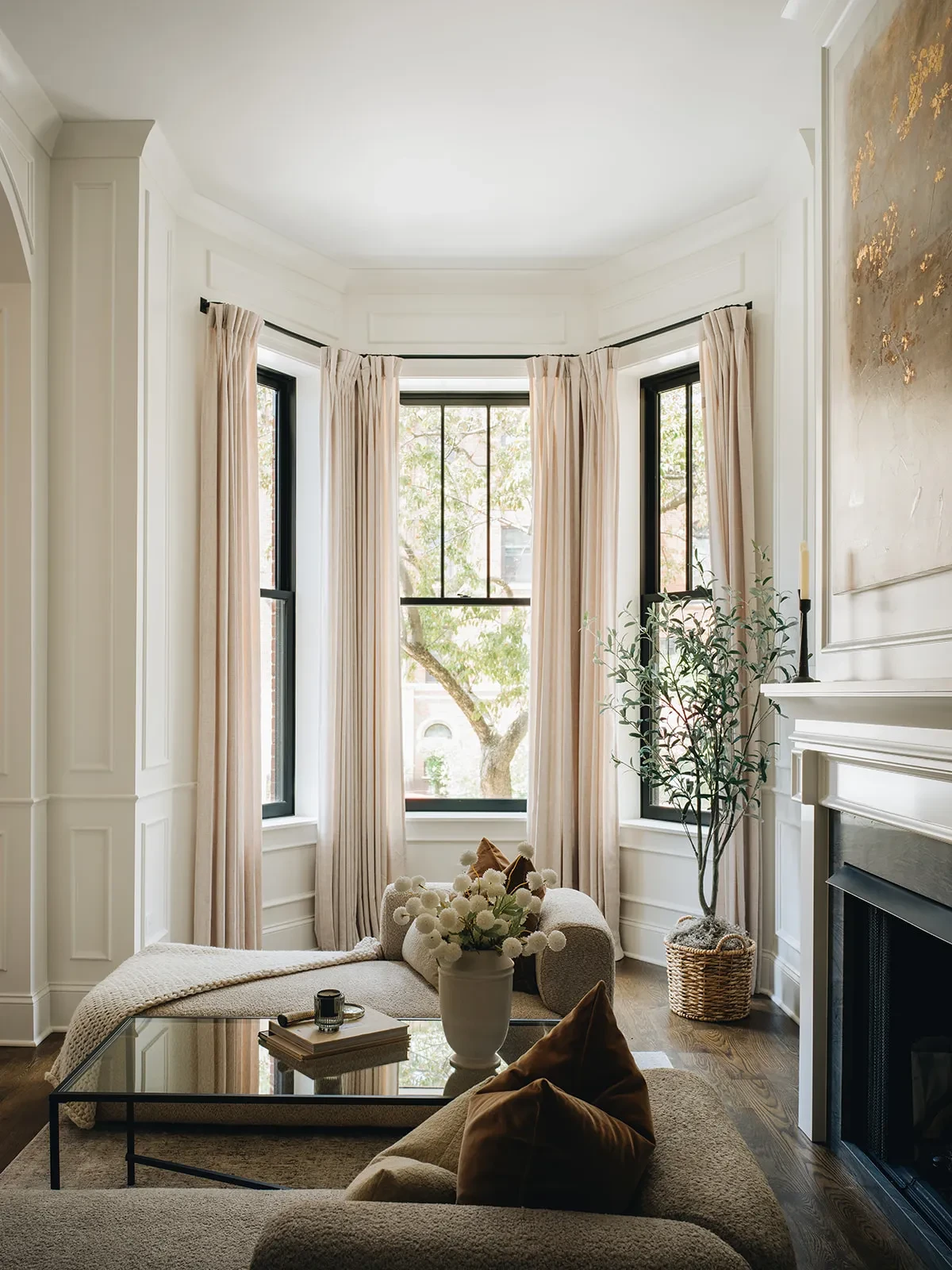 «Για μένα, τα πιο σκούρα χρώματα δίνουν ζεστασιά και θαλπωρή, που αγαπώ πολύ», λέει η Thompson, ιδρύτρια της Urbane Home, γνωστής για τις πολυτελείς αναπτύξεις της στην πόλη. «Όταν τα συνδυάζεις με ξύλο, υφές και φυσικό φως, το αποτέλεσμα είναι γήινο και φέρνει το απαραίτητο cozy αίσθημα στον χώρο.» Αυτή η φιλοσοφία διαμόρφωσε ένα από τα πιο φιλόδοξα έργα της: τη μετατροπή μιας κατοικίας 150 ετών στην Old Town του Σικάγο, μια γοητευτική γειτονιά με λιθόστρωτους δρόμους και πλούσια πολιτιστική ιστορία.