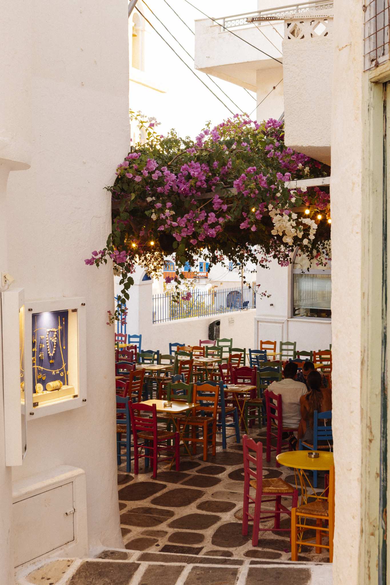 3. Το πρώτο πράγμα που κάνω όταν καταφθάνω στο νησί είναι να κατηφορίζω στη Χώρα. Θέλω να ξαναβρώ τις γνώριμες γωνιές, τα μικρά καφέ και τα γεμάτα χαμόγελα μαγαζιά. Μετά, αφήνω τον αέρα να με οδηγήσει ως τη θάλασσα. Είναι ένας τελετουργικός χαιρετισμός ανάμεσα σε μένα και στο νησί.
