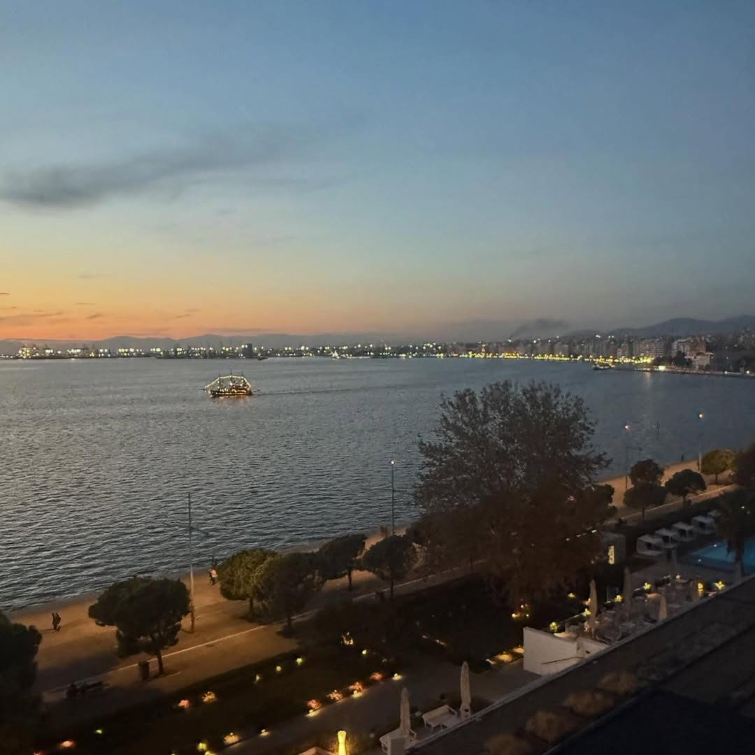 Λίγο νωρίτερα, μετά την άφιξή της στη Θεσσαλονίκη, η σχεδιάστρια μοιράστηκε με τους followers της στο Instagram φωτογραφίες με τη θέα προς το λιμάνι της πόλης, τις οποίες συνόδευσε με στιγμές από το dinner.