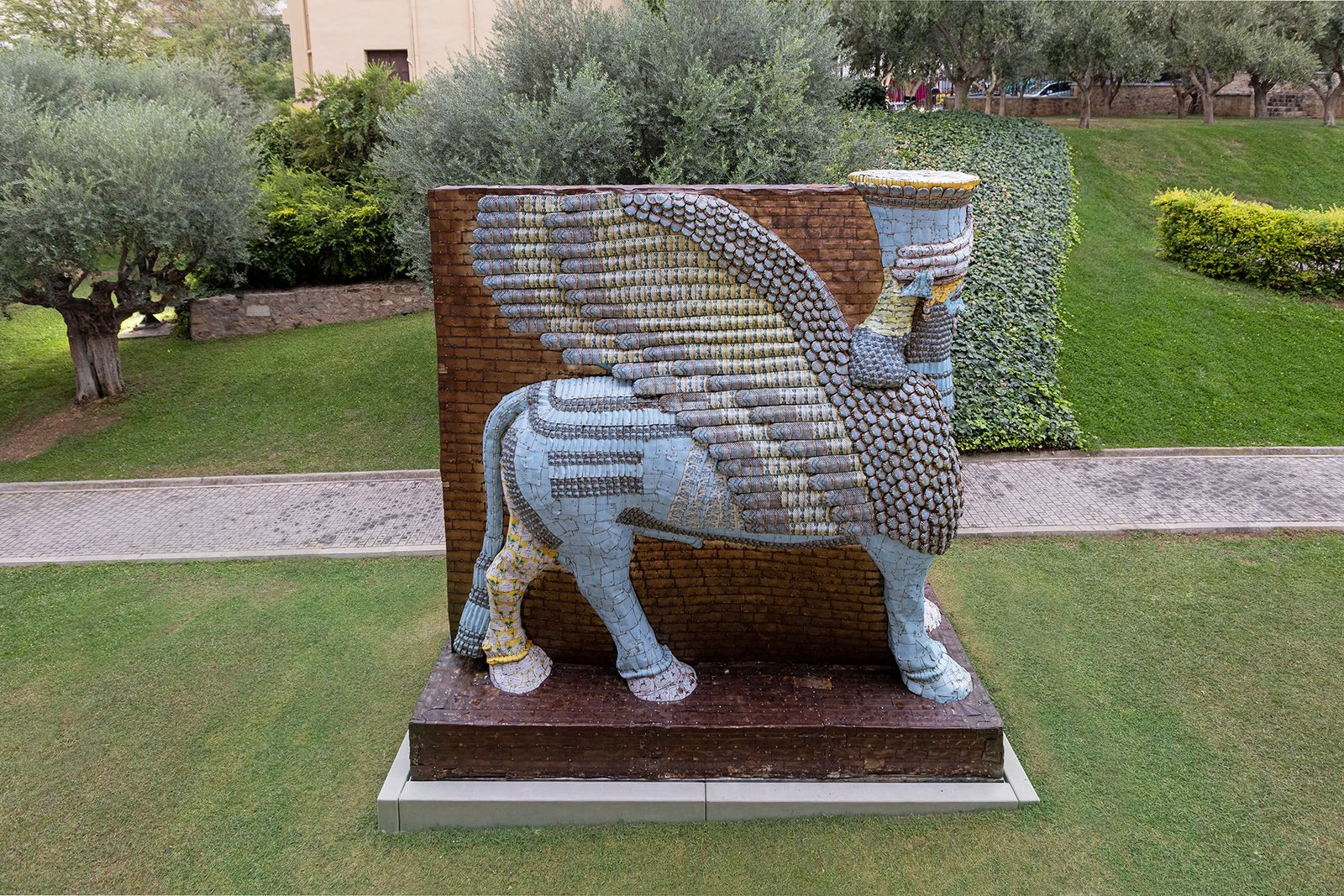 Η γλυπτική εγκατάσταση εκτίθεται στον εξωτερικό χώρο του Μουσείου, στη δυτική πλευρά του, προς την οδό Μητσαίων. Το έργο ανήκει στη συνεχιζόμενη σειρά του Rakowitz The Invisible Enemy Should Not Exist (από το 2006), η οποία επιχειρεί να «αναστήσει» αντικείμενα που λεηλατήθηκαν από το Εθνικό Μουσείο του Ιράκ στη Βαγδάτη ή καταστράφηκαν σε αρχαιολογικούς χώρους μετά τον πόλεμο του 2003.