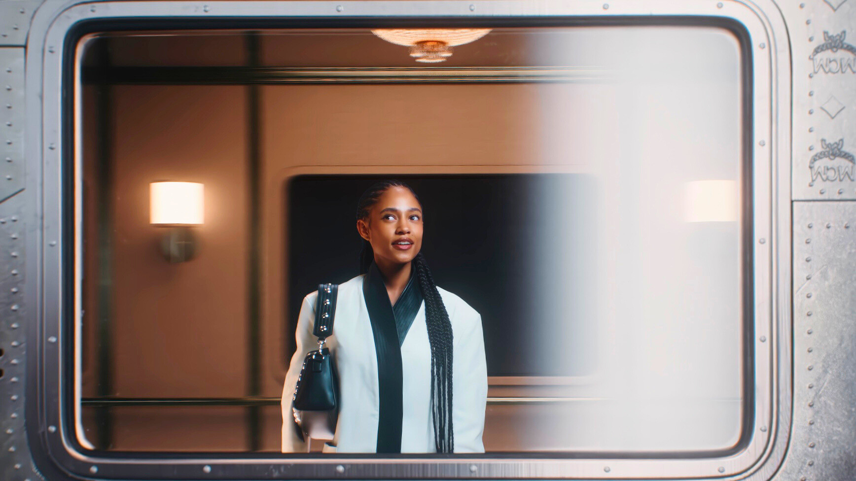 Το ταξίδι ξεκινά στο Μόναχο, την πόλη όπου γεννήθηκε η MCM και πλέον μεταμορφώνεται σε ένα τεχνολογικά ανεπτυγμένο, φωτεινό μητροπολιτικό τοπίο. Εκεί, οι ταξιδιώτες ετοιμάζονται να επιβιβαστούν στο Holiday Express, συνοδευόμενοι από ρομποτικούς βοηθούς και περιτριγυρισμένοι από τα εμβληματικά Haus Codes του brand. Στο κέντρο της σκηνής βρίσκεται η New Liz Shopper, ένα από τα πιο αγαπημένα σχέδια της MCM, που εδώ παρουσιάζεται σε νέες, γιορτινές εκδοχές, αλλά και στη διαχρονική Cognac Visetos. Μια τσάντα σύμβολο, που αποτελεί την πρώτη «βαλίτσα» του ταξιδιού.