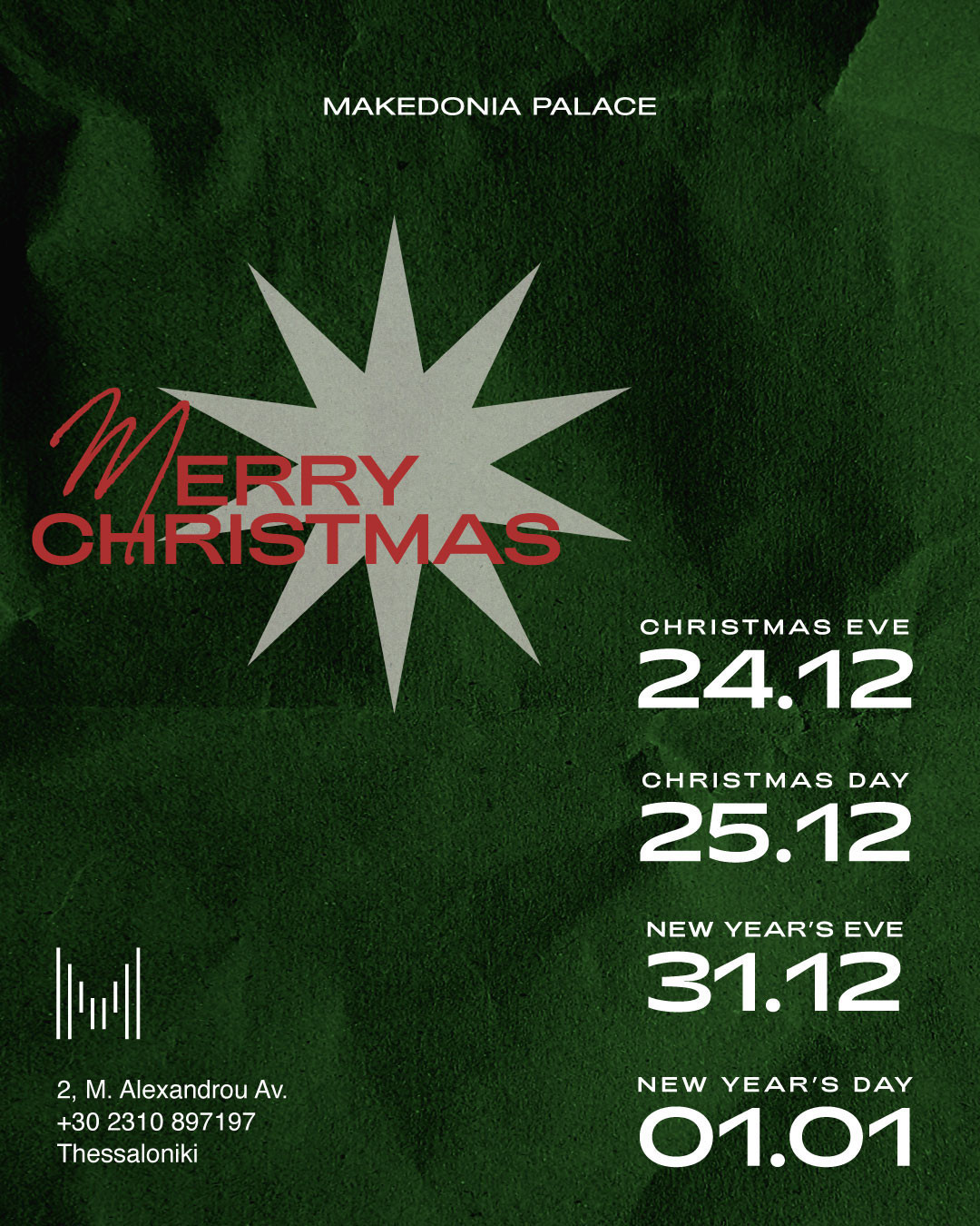 Η Παραμονή Πρωτοχρονιάς στο Makedonia Palace μετατρέπεται σε μια βραδιά λάμψης και γιορτής, με δύο πλούσια εορταστικά μενού γεμάτα εκλεκτές γεύσεις. Από τη μία ένας Πρωτοχρονιάτικος μπουφές στο Ballroom του ξενοδοχείου από τις 21:30, με τη μουσική συνοδεία του Λούκα Γιώρκα και της ορχήστρας του να μετράει αντίστροφα για τον ερχομό του νέου έτους.