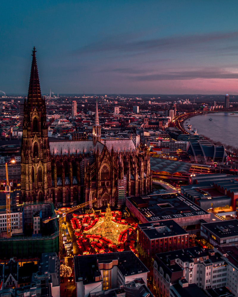 Η Γερμανία είναι ίσως η χώρα που έχει ταυτιστεί περισσότερο από κάθε άλλη με τις χριστουγεννιάτικες αγορές, και η Κολωνία αποτελεί εξαιρετικό παράδειγμα. Η αγορά μπροστά στον Καθεδρικό Ναό προσφέρει μοναδική ατμόσφαιρα, ενώ χιλιάδες λαμπάκια αντανακλούν πάνω στο πανύψηλο γοτθικό μνημείο. Η πόλη φιλοξενεί διαφορετικές θεματικές αγορές, κάθε μία με τη δική της ταυτότητα, από παραδοσιακές μέχρι πιο σύγχρονες και καλλιτεχνικές.
